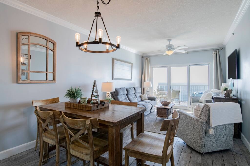 Open floor plan allows for gorgeous ocean views from the kitchen, dining room, and living room.